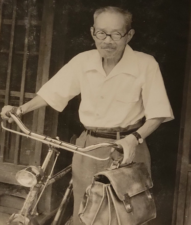 晩年の次郎吉(往診に使っていた自転車と往診バック)