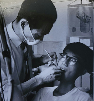 その後、故郷に戻り白山市美川町にて『新歯科医院』を開院します。この時、小松から白山に居を移します。親兄弟が医師を志すなか、強く歯科医にこだわったと聞いています。83歳まで美川町で歯科診療を続けました。物静かな穏やかな人柄の町の歯医者でした。